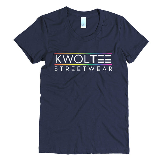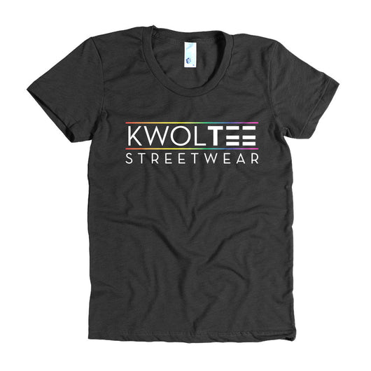 KWOLTEE STREETWEAR white text logo dark/colored women's short sleeve with a slightly scooped neckline. Ultra-comfy, feels like you’ve owned it for years the moment you put it on, and for years to come.